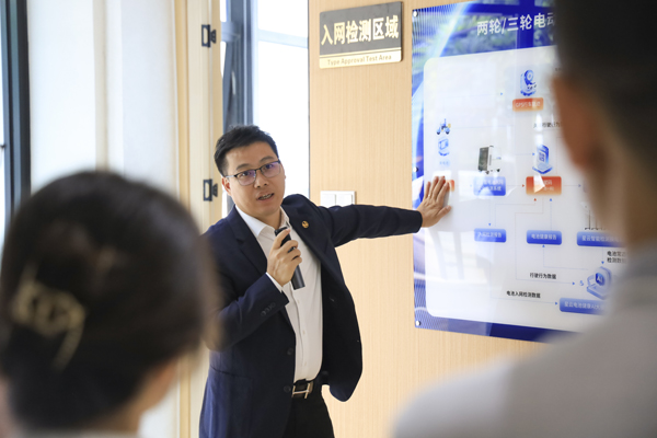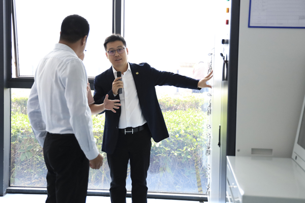乐鱼在线官网股份副董事长兼总裁刘作斌带领客户嘉宾参观、体验电动自行车、电动摩托车电池检测